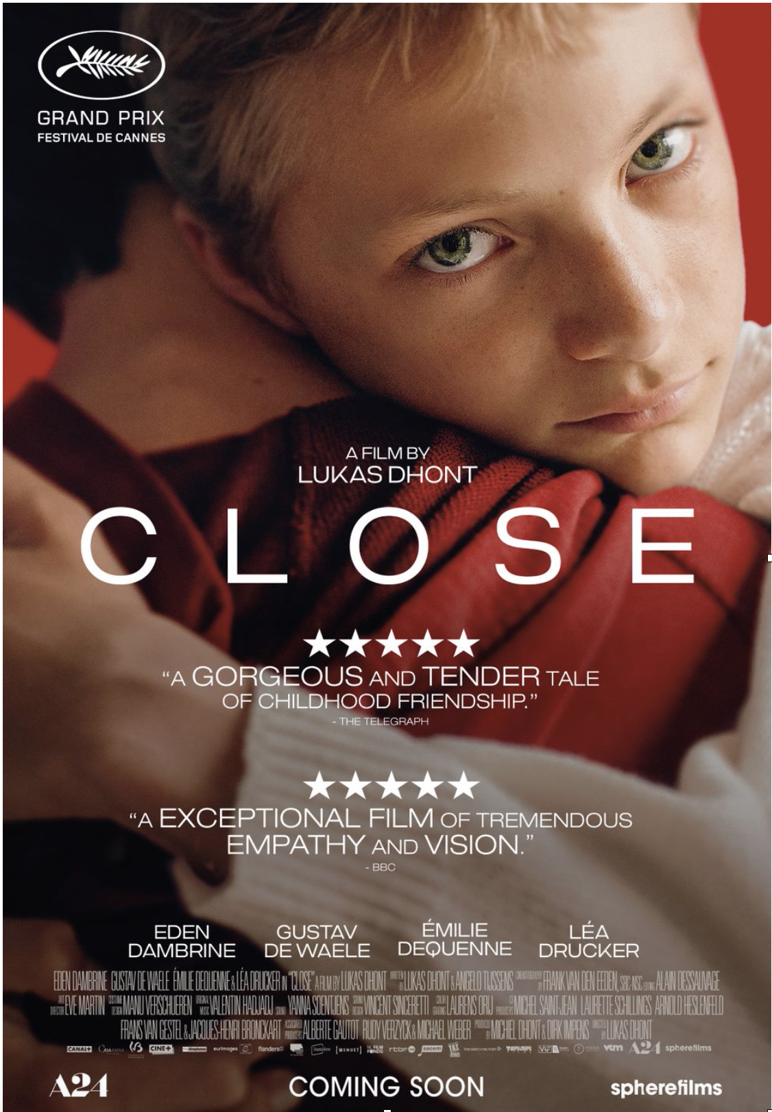 The intense friendship between two thirteen-year old boys Leo and Remi suddenly gets disrupted. Struggling to understand what has happened, Léo approaches Sophie, Rémi's mother. "Close" is a film about friendship and responsibility